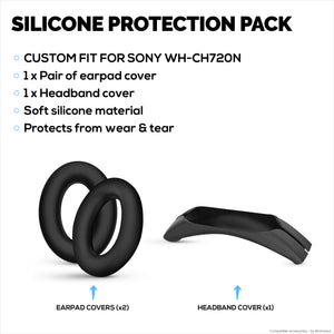 Silicone cover set designed specifically for Sony WH-CH720N headphones. Includes covers for the headband and earpads to keep your headset safe from scratches, dust, sweat, and moisture.